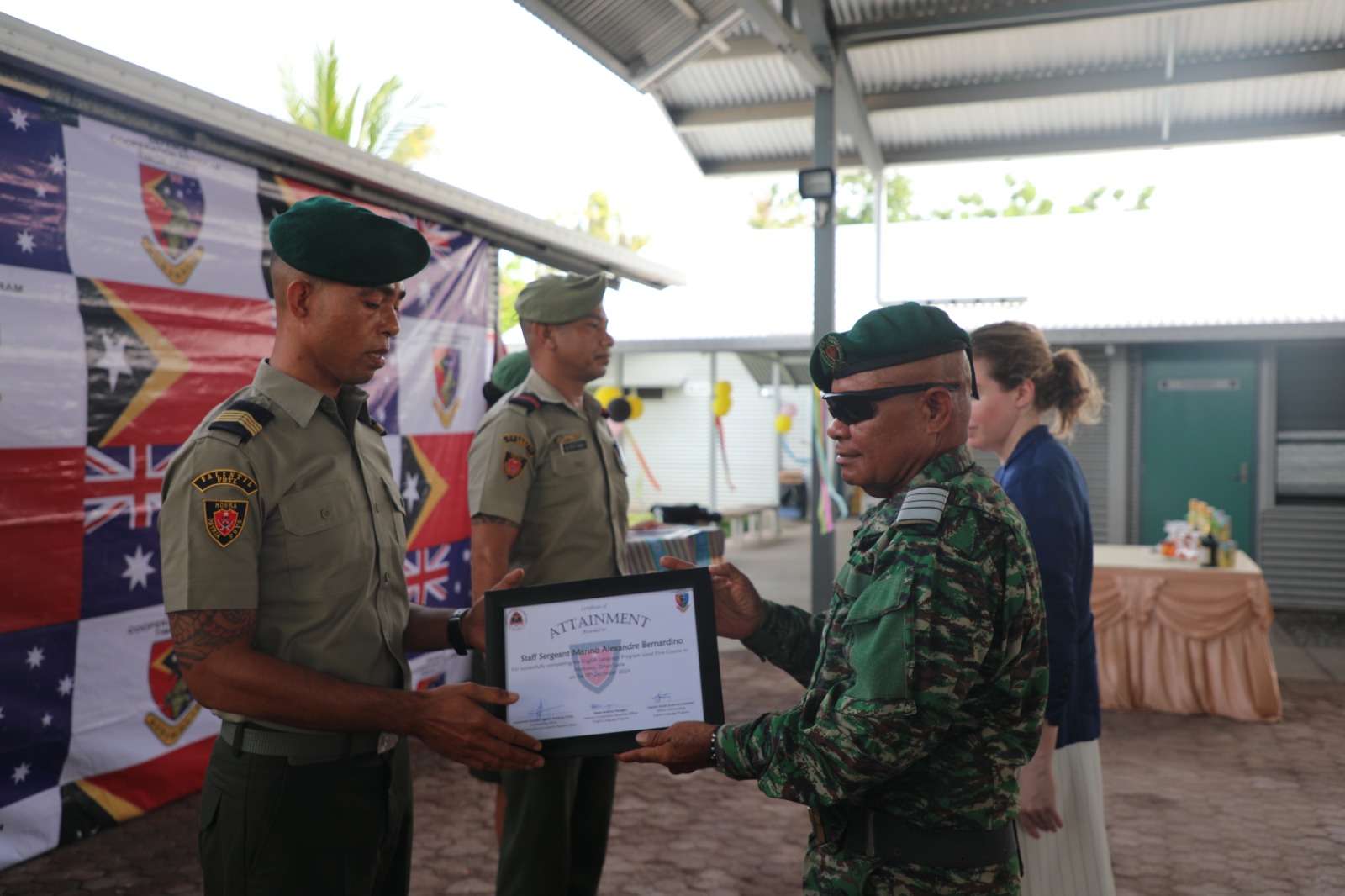 Defence Koperation Education, Coronel, Andrew Flanayan, agradese ba graduadu sira tanba durante kursu tinan ida nia laran halo esforsu makaas to’o formasaun ne’e remata.
